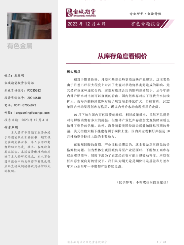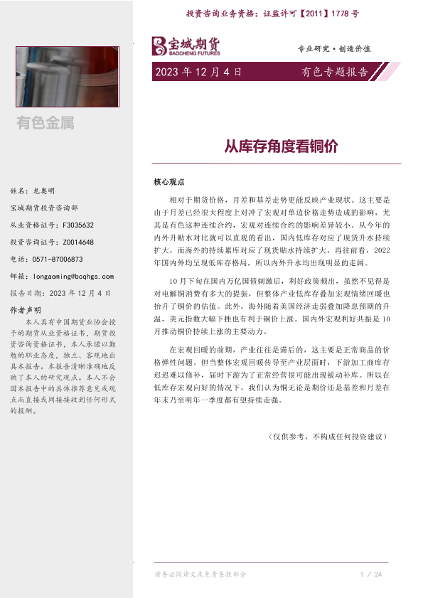【宝城期货】【20231204】有色专题报告:从库存角度看铜价-11页