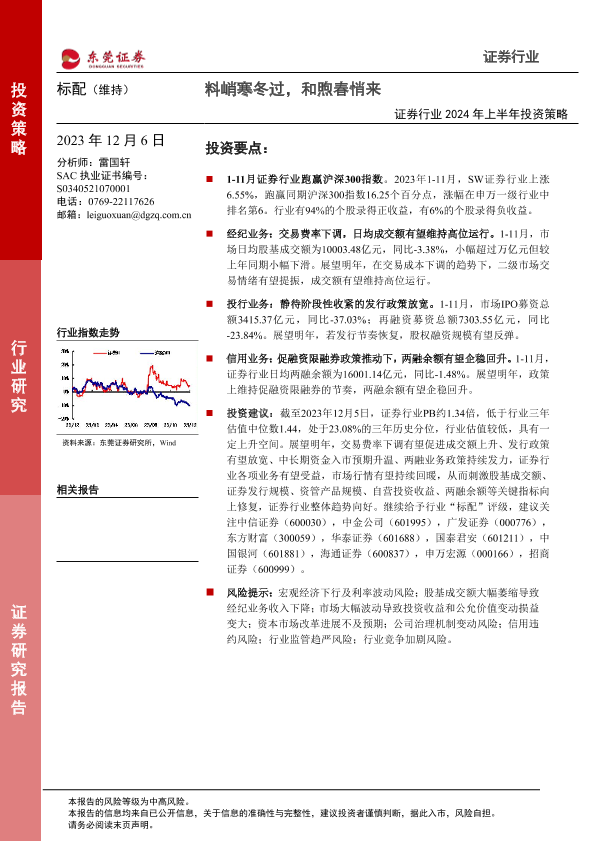 【东莞证券】【20231206】证券行业2024年上半年投资策略:料峭寒冬过,和煦春悄来-19页