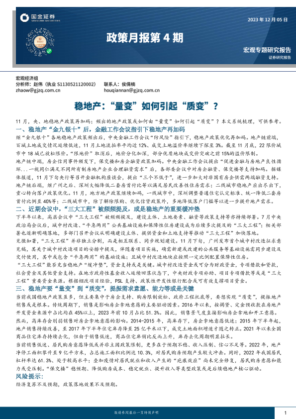 【国金证券】【20231205】政策月报第4期:稳地产:“量变”如何引起“质变”?-16页