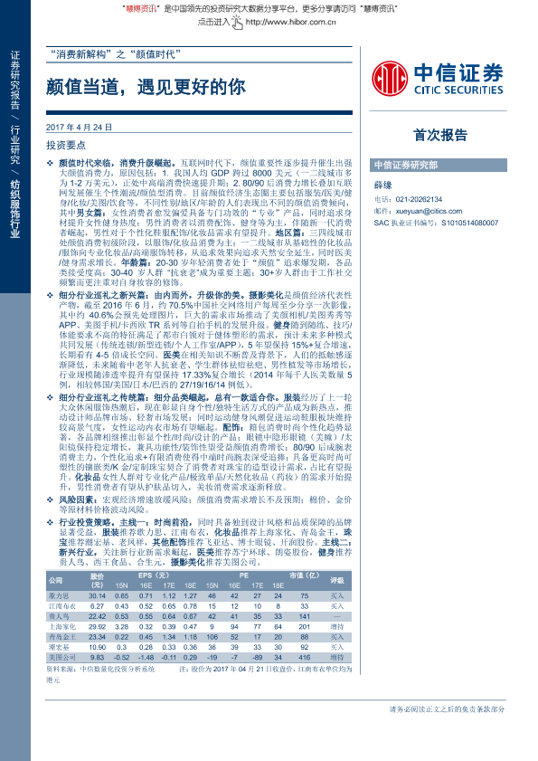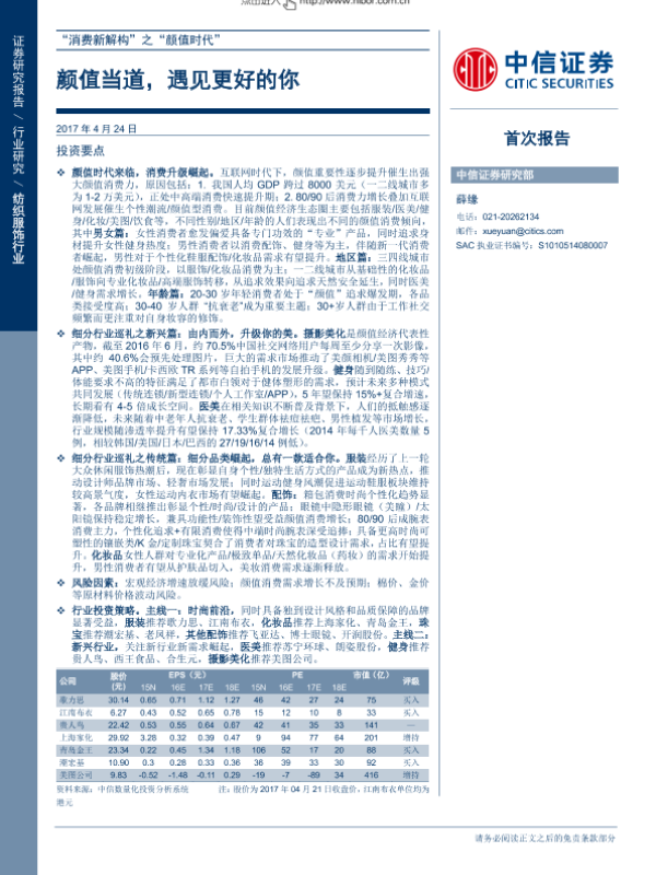 【中信证券】【20170424】中信证券-纺织服饰行业:颜值当道,遇见更好的你-35页