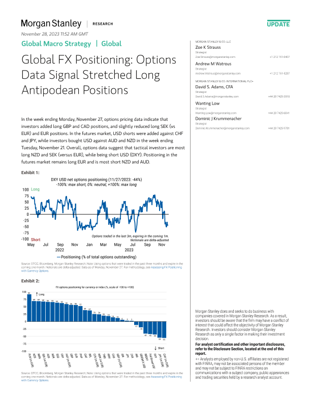 【Morgan Stanley】【2023】Global FX Positioning Options Data Signal Stretched Long Antipodean Positions-7页