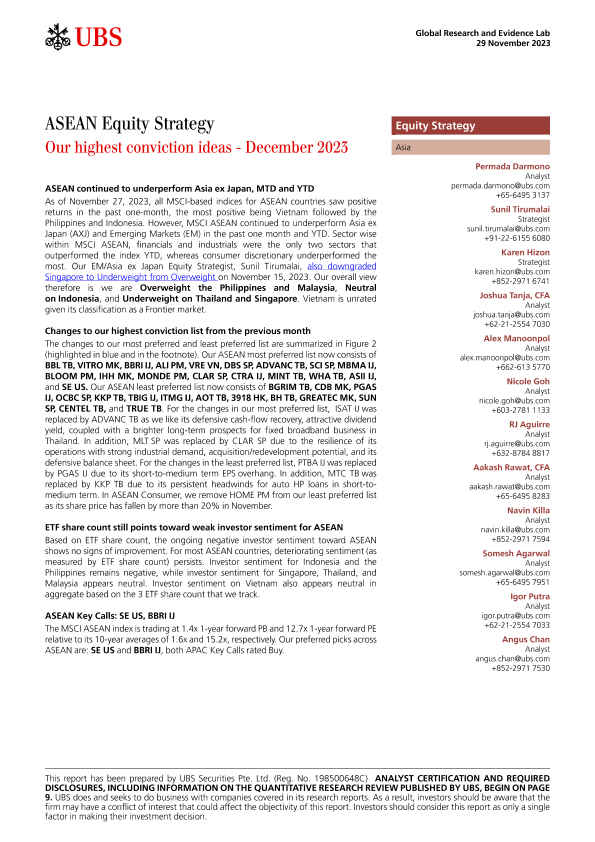【UBS Securities Pte. Ltd.】【20231129】ASEAN Equity Strategy Our highest conviction ideas - December 2023-14页
