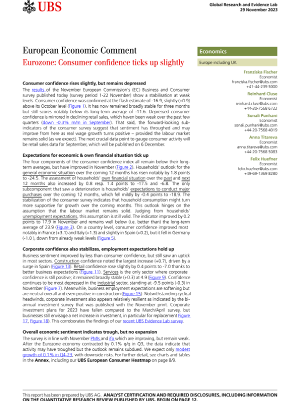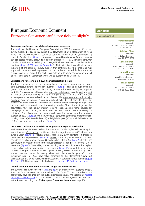 【UBS AG】【20231129】Eurozone Consumer confidence ticks up slightly-15页
