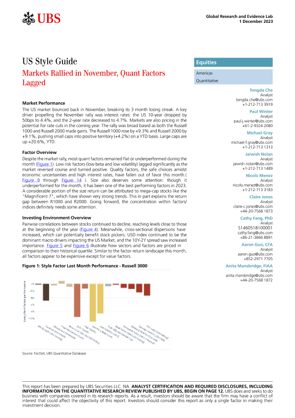 【UBS Securities LLC】【20231201】US Style Guide Markets Rallied in November, Quant Factors Lagged-16页