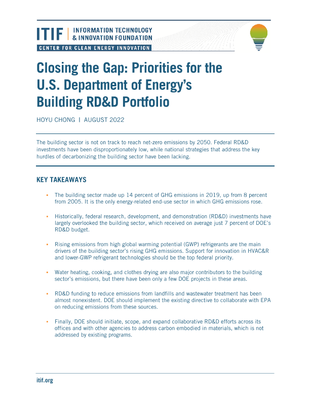 【信息技术与创新基金会 (Information Technology & Innovation Foundation)】【202208】弥合差距:美国能源部建筑研发组合的优先事项-16页