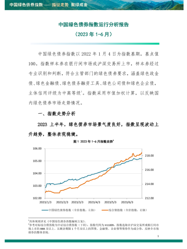 【中国绿色债券指数】【2023】2023年上半年中国绿色债券指数运行分析报告-7页