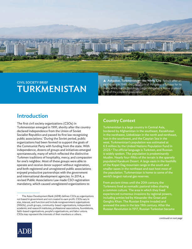 【亚洲开发银行(ADB)】【2023】亚开行-公民社会简报:土库曼斯坦-12页