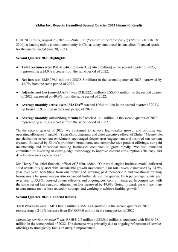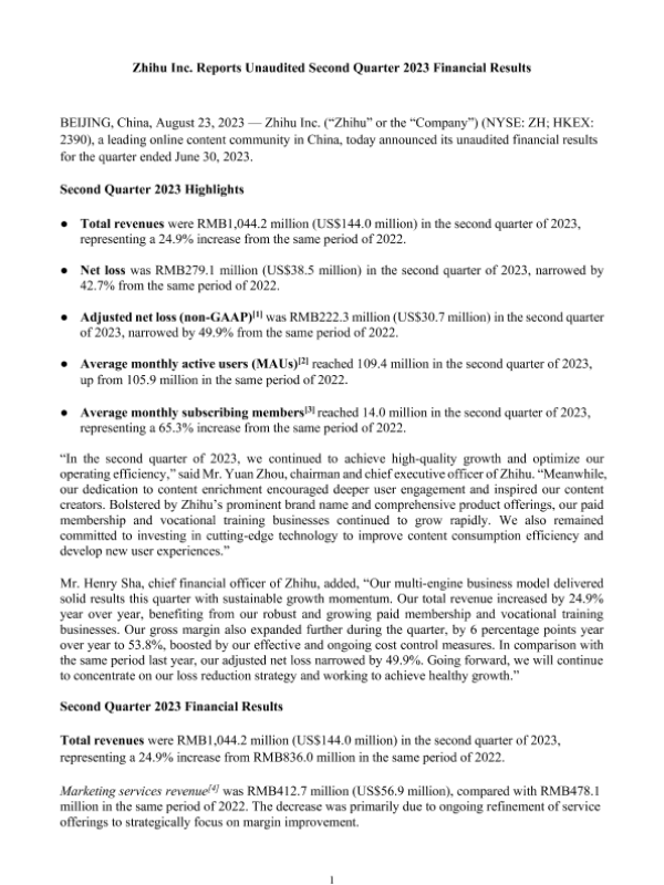 【Zhihu Inc.】【20230823】知乎2023年第二季度财务报告-9页