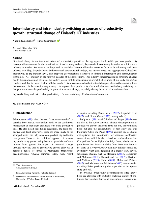 【Natalia Kuosmanen】【2023】作为生产力增长来源的产业间和产业内转换:芬兰信息和通信技术产业的结构变化-12页