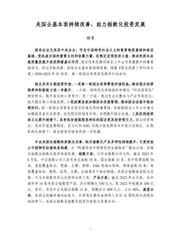【中证指数】【2023】央国企基本面持续改善,助力指数化投资发展-18页