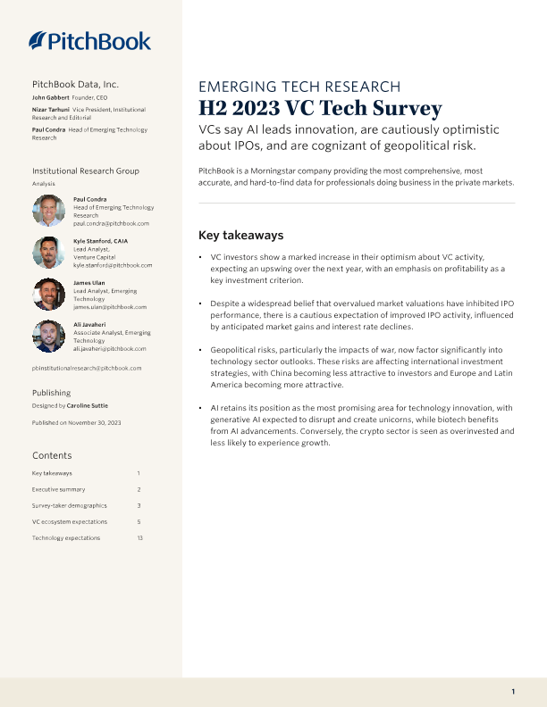 【PitchBook Data】【20231130】2023年下半年VC技术调查-17页