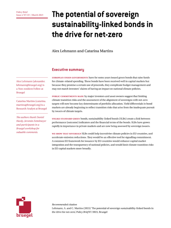 【布鲁盖尔研究所】【202303】布鲁盖尔研究所-主权可持续性相关债券在实现净零排放方面的潜力-20页