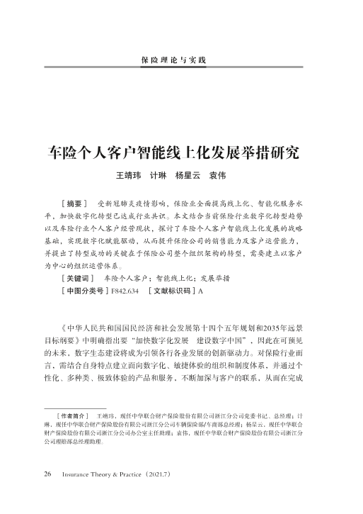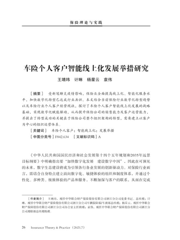 【中华联合财产保险股份有限公司浙江分公司】【2021】车险个人客户智能线上化发展举措研究-21页