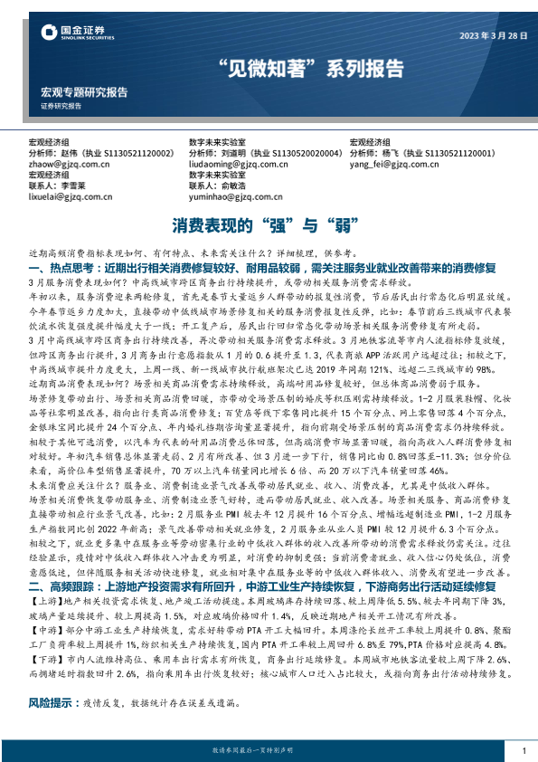 【国金证券】【20230328】“见微知著”系列报告:消费表现的“强”与“弱”-18页