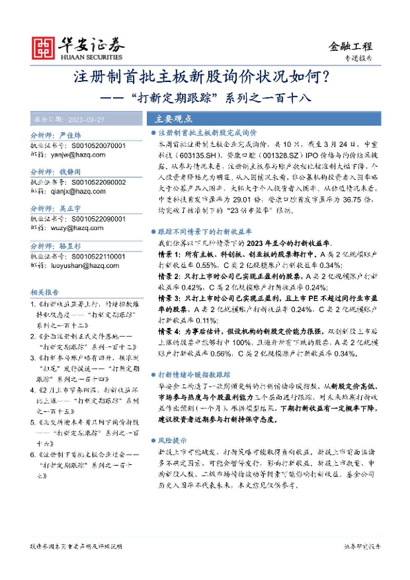 【华安证券】【20230327】“打新定期跟踪”系列之一百十八:注册制首批主板新股询价状况如何?-23页