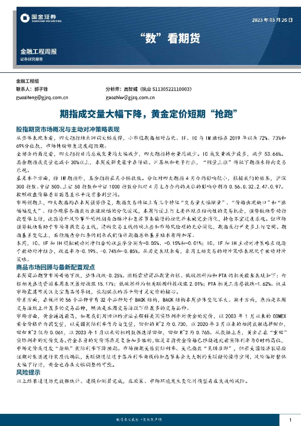 【国金证券】【20230326】“数”看期货:期指成交量大幅下降,黄金定价短期“抢跑”-15页