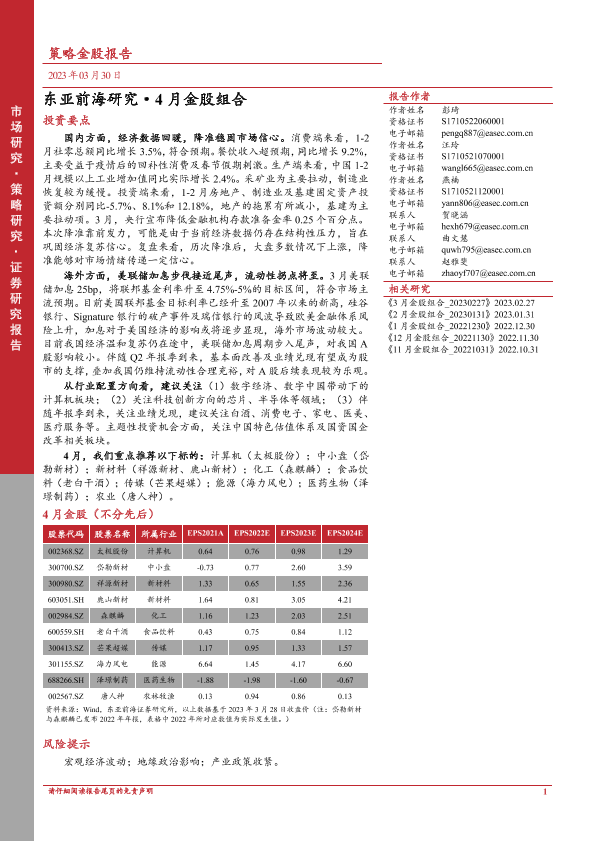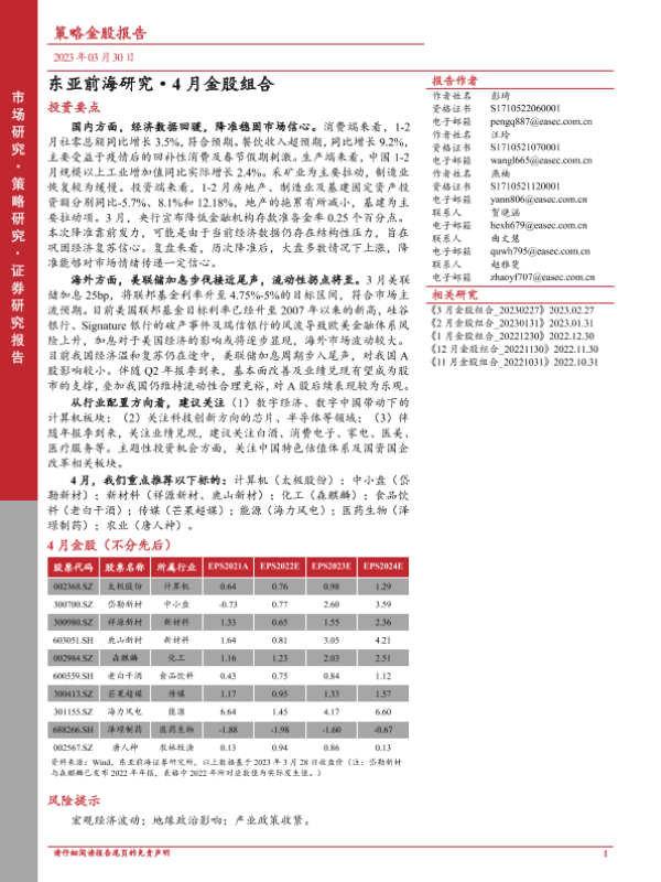 【东亚前海证券】【20230330】4月金股组合-18页
