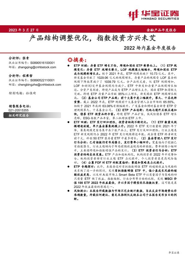 【华宝证券】【20230327】2022场内基金年度报告:产品结构调整优化,指数投资方兴未艾-27页