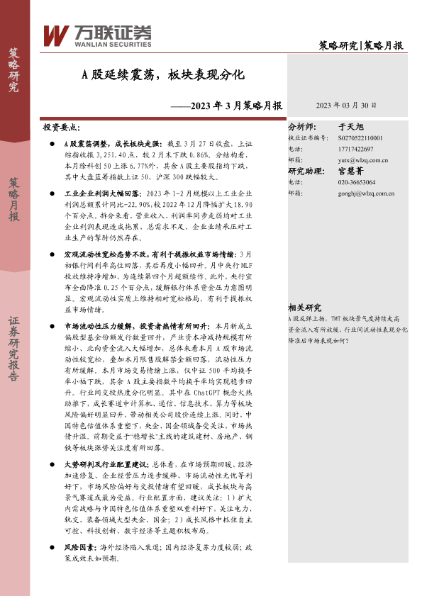 【万联证券】【20230330】2023年3月策略月报:A股延续震荡,板块表现分化-18页