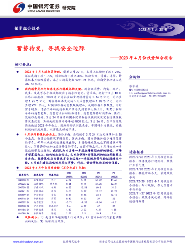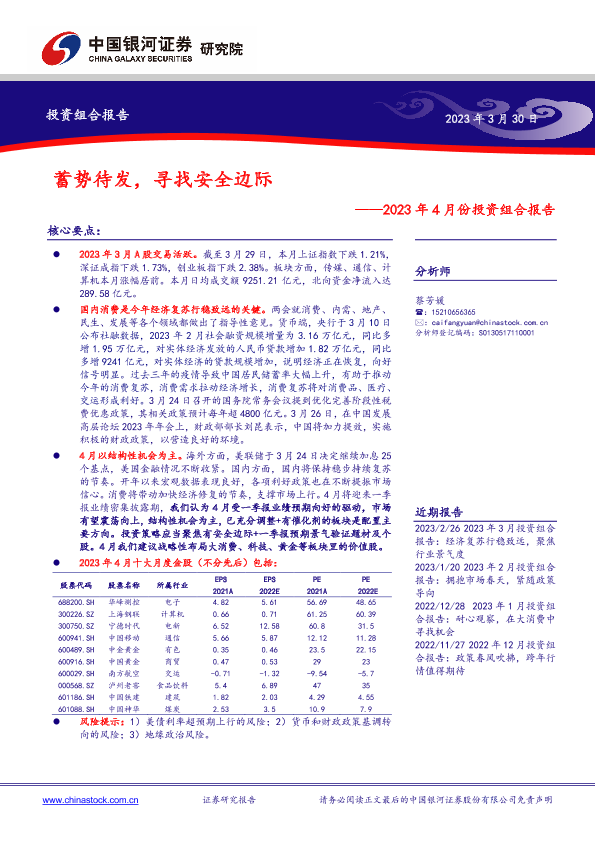 【银河证券】【20230330】2023年4月投资组合报告:蓄势待发,寻找安全边际-20页