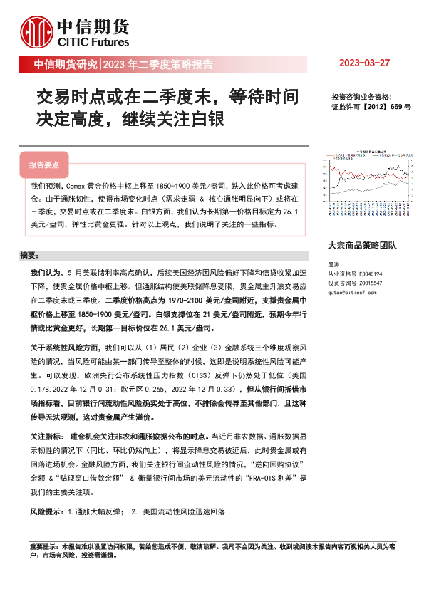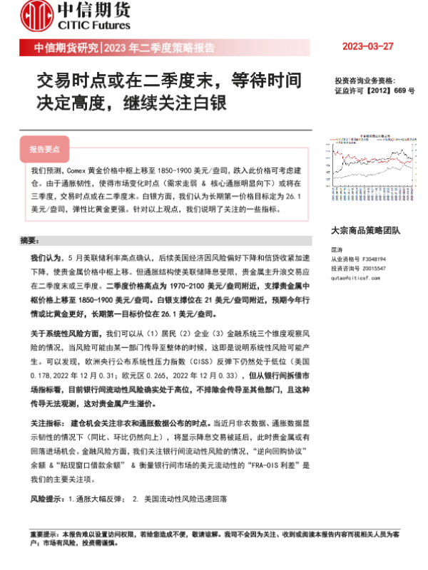 【中信期货】【20230327】2023年二季度策略报告:交易节点或在二季度末,等待时间决定高度,继续关注白银-20页