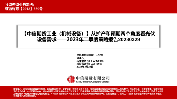 【中信期货】【20230329】2023年二季度策略报告:工业(机械设备)】从扩产和预期两个角度看光伏设备需求-26页