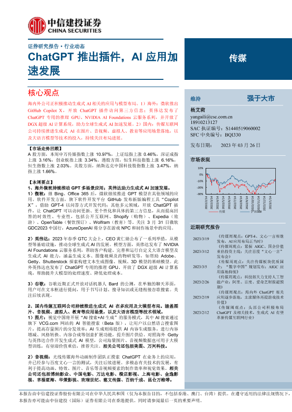 【中信建投证券】【20230326】传媒行业动态:ChatGPT推出插件,AI应用加速发展-30页