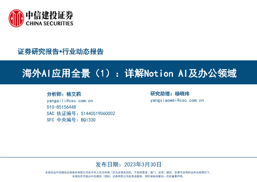 AI应用 Notion AI 中信建投 办公领域 海外研究