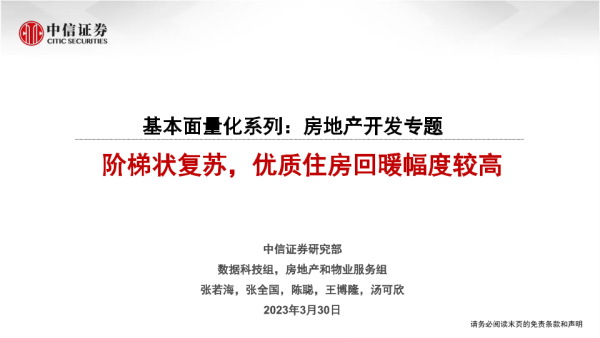 【中信证券】【20230330】房地产行业基本面量化系列:房地产开发专题,阶梯状复苏,优质住房回暖幅度较高-23页