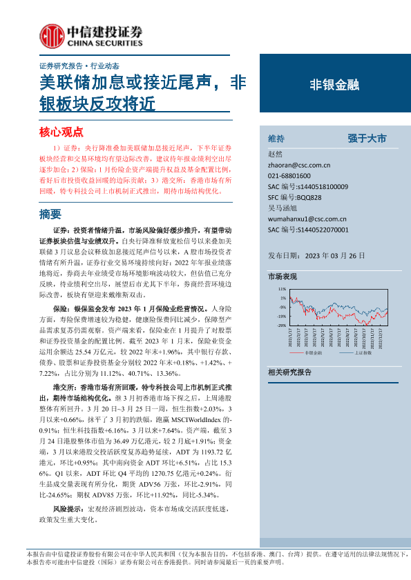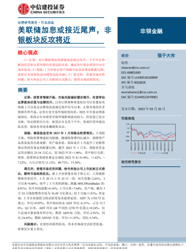 【中信建投证券】【20230326】非银金融行业动态:美联储加息或接近尾声,非银板块反攻将近-24页