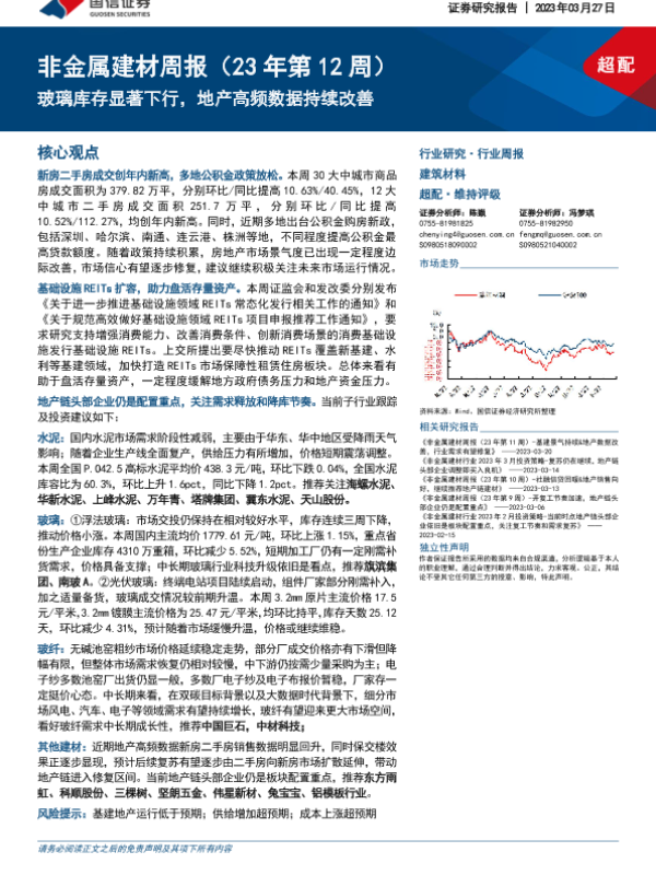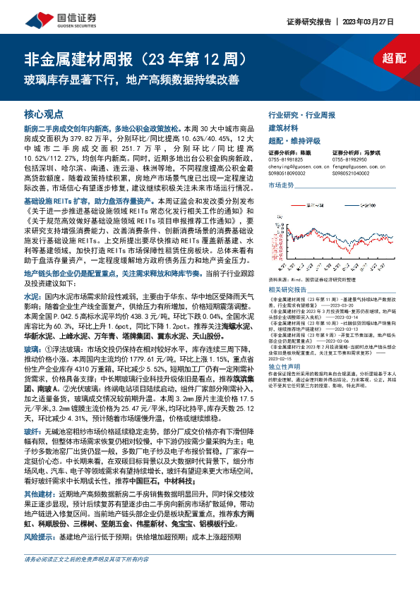 【国信证券】【20230327】非金属建材周报(23年第12周):玻璃库存显著下行,地产高频数据持续改善-23页