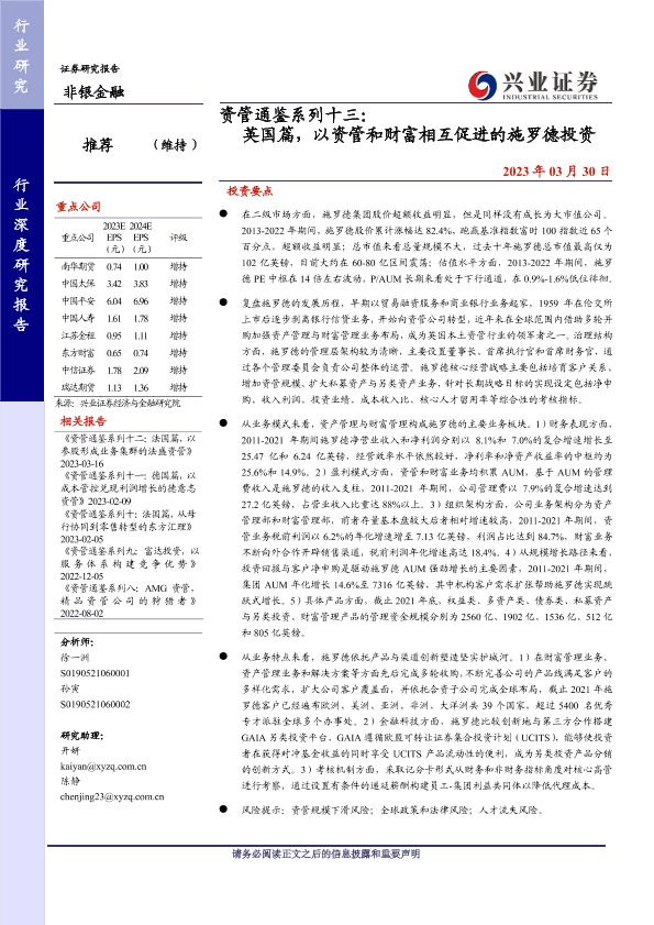【兴业证券】【20230330】非银金融行业资管通鉴系列十三:英国篇,以资管和财富相互促进的施罗德投资-29页