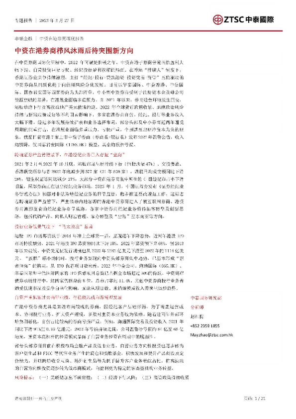 【中泰国际】【20230327】非银金融行业专题报告:中资在港券商栉风沐雨后待突围新方向-21页