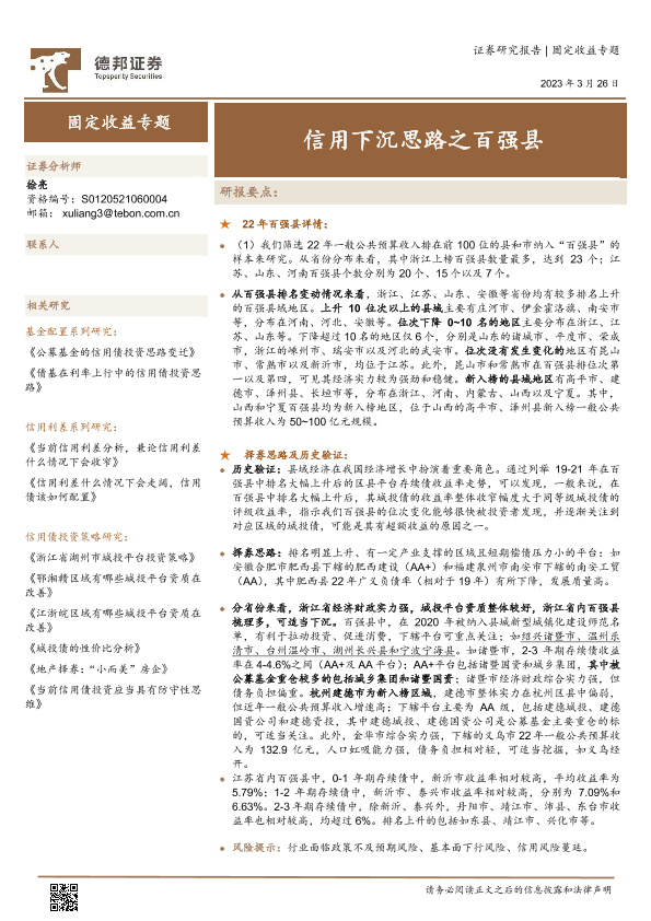 【德邦证券】【20230326】固定收益专题:信用下沉思路之百强县-23页