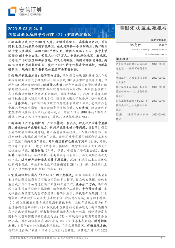 【安信证券】【20230324】国家级新区城投平台梳理(2):重庆两江新区-17页