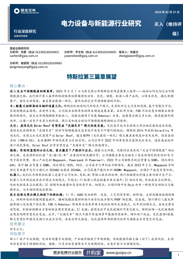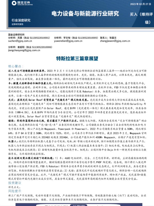 【国金证券】【20230227】国金证券电力设备及新能源行业研究报告:特斯拉第三章展望-26页