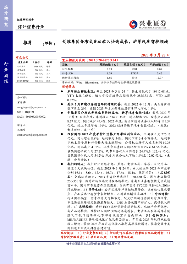 【兴业证券】【20230327】海外消费行业:创维集团分布式光伏收入快速成长,进军汽车智控领域-17页