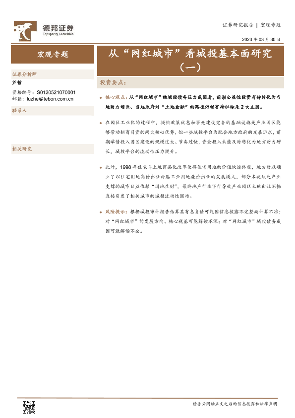 【德邦证券】【20230330】宏观专题:从“网红城市”看城投基本面研究(一)-18页