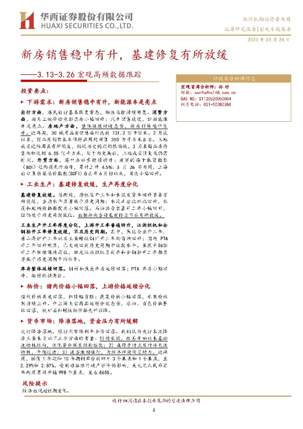 【华西证券】【20230326】宏观高频数据跟踪:新房销售稳中有升,基建修复有所放缓-16页