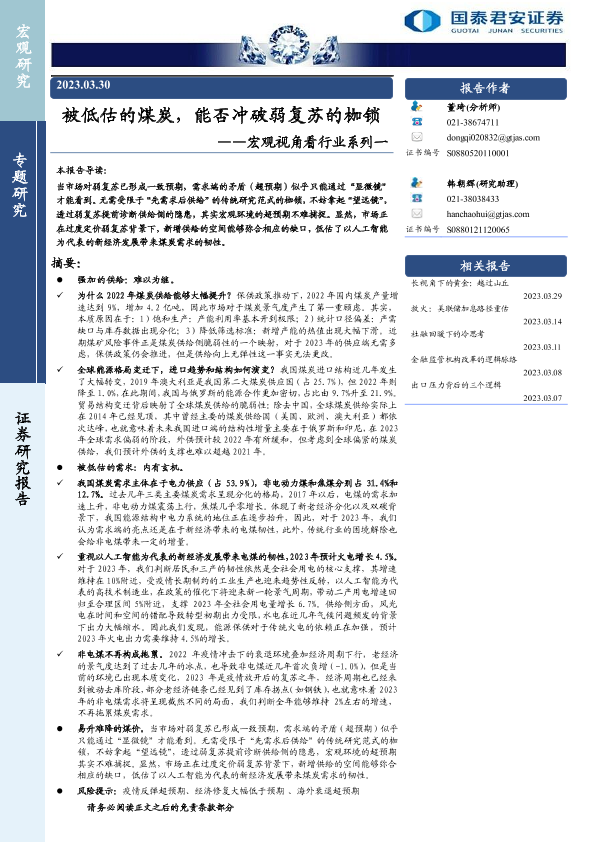 【国泰君安证券】【20230330】被低估的煤炭,能否冲破弱复苏的枷锁-19页