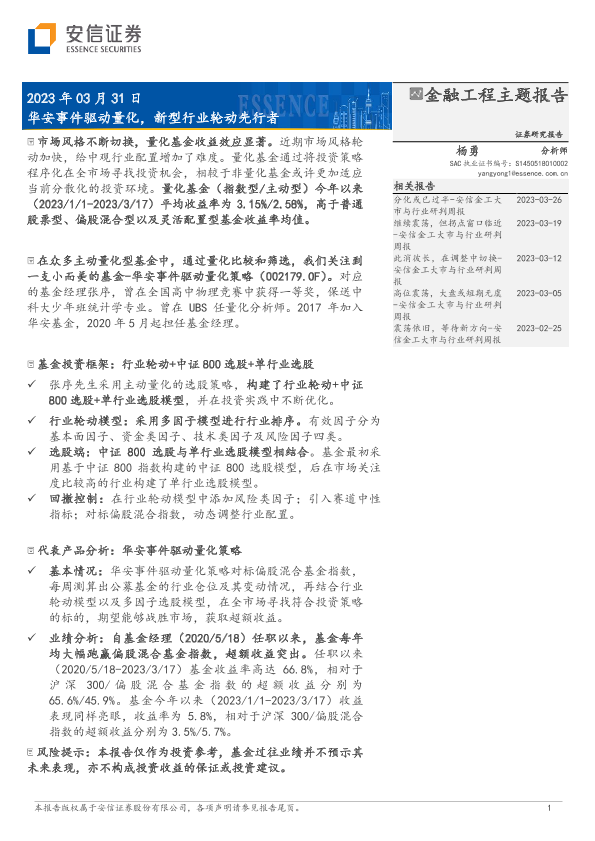 【安信证券】【20230331】华安事件驱动量化,新型行业轮动先行者-20页
