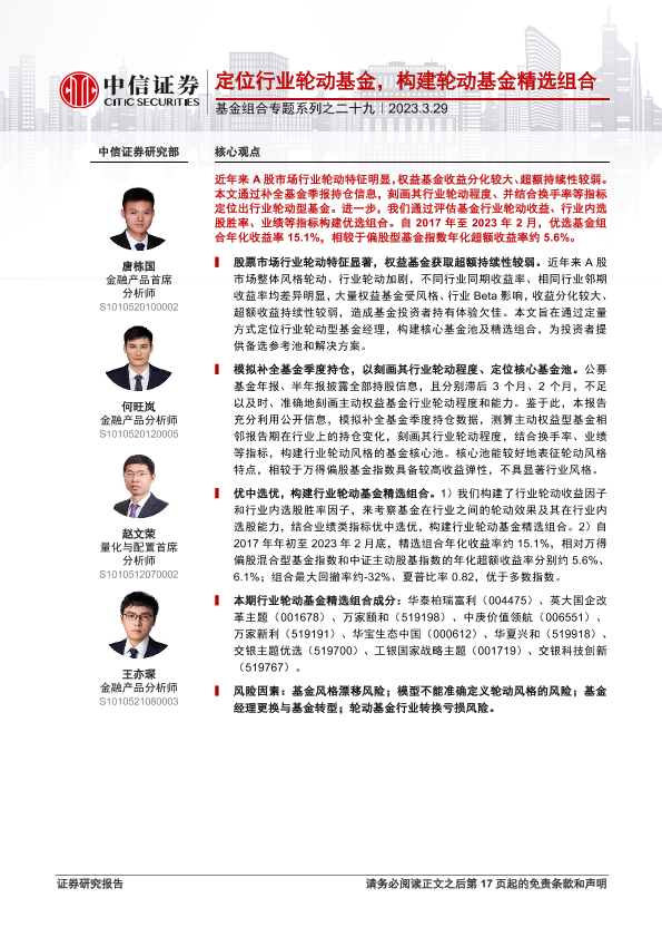 【中信证券】【20230329】基金组合专题系列之二十九:定位行业轮动基金,构建轮动基金精选组合-18页