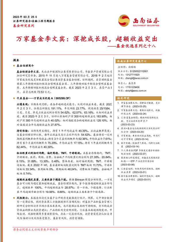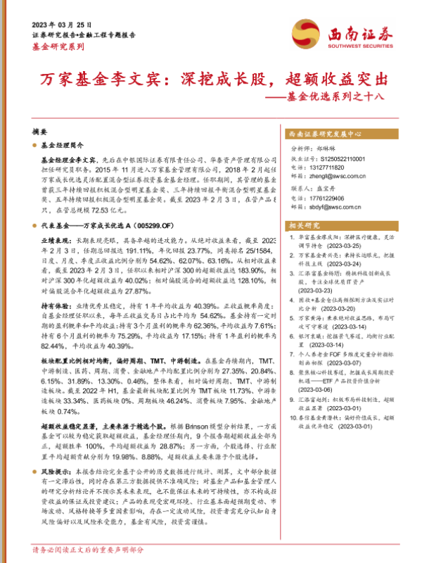 【西南证券】【20230325】基金优选系列之十八:万家基金李文宾,深挖成长股,超额收益突出-24页