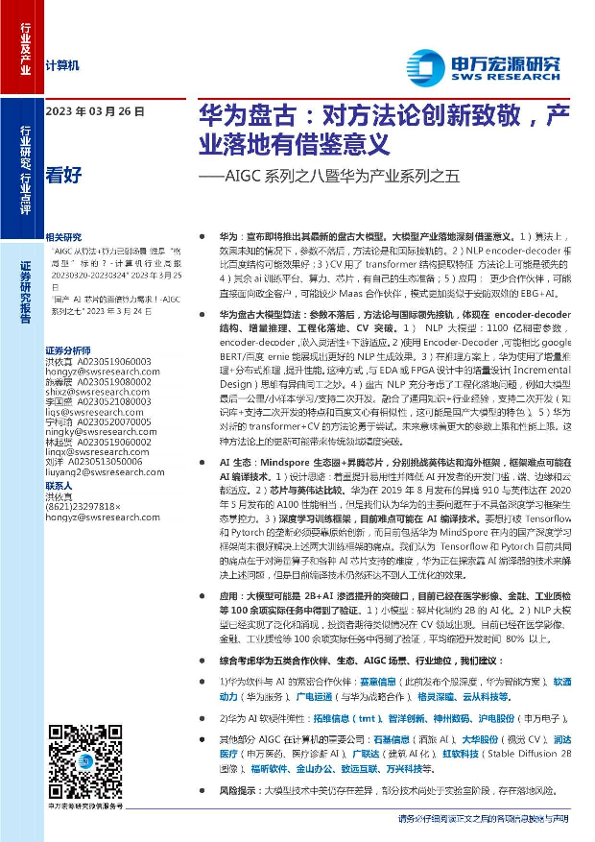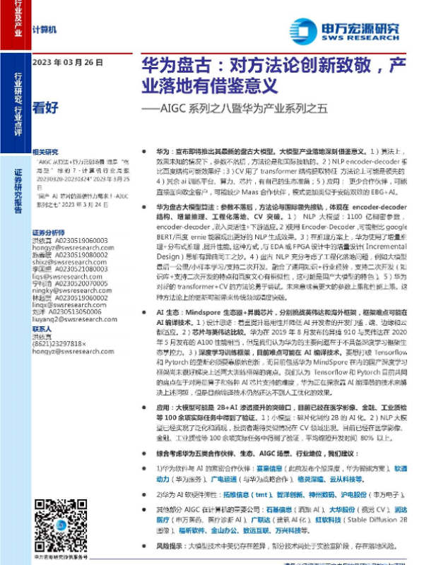 【申万宏源】【20230326】计算机行业AIGC系列之八暨华为产业系列之五:华为盘古,对方法论创新致敬,产业落地有借鉴意义-17页