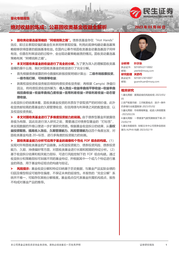 【民生证券】【20230306】量化专题报告:绝对收益的炼成,公募固收类基金收益全解析-43页