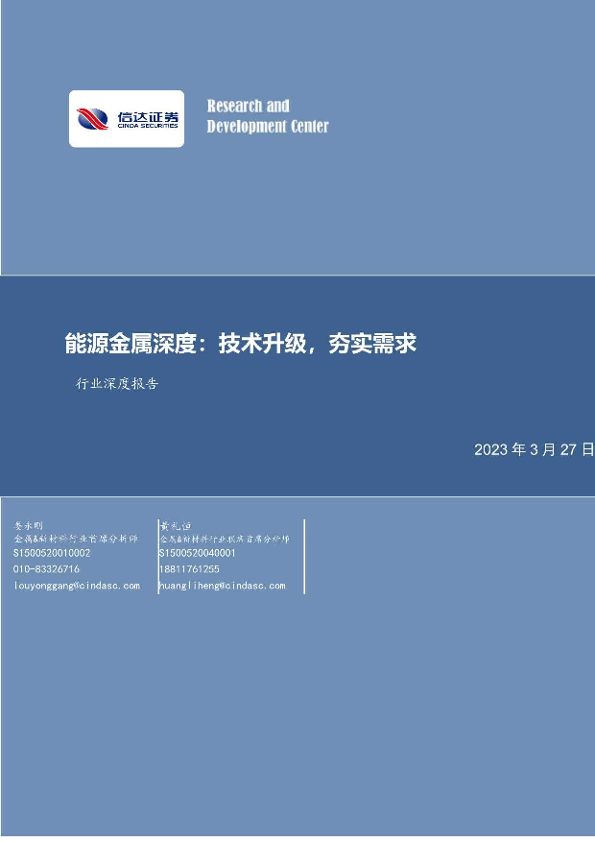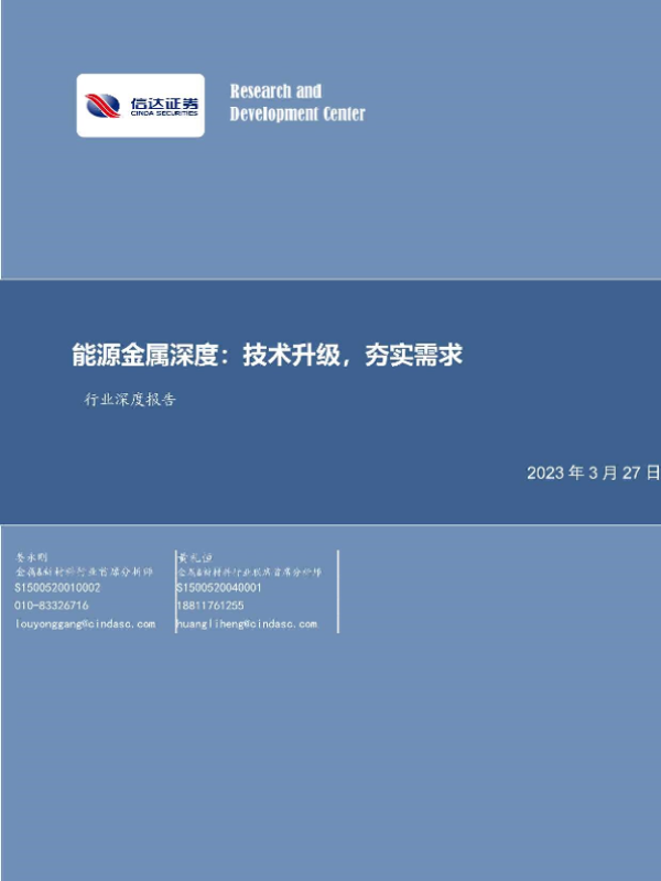 【信达证券】【20230327】能源金属行业深度:技术升级,夯实需求-25页