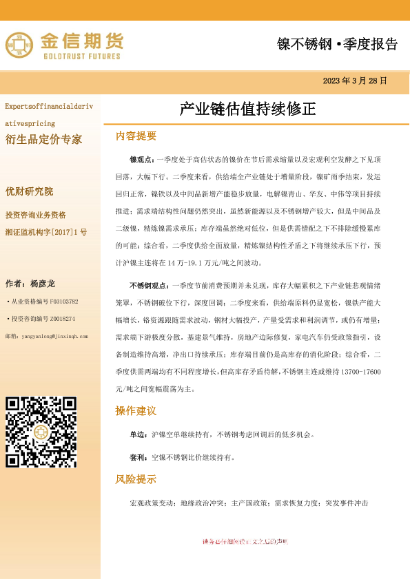 【金信期货】【20230328】镍不锈钢·季度报告:产业链估值持续修正-26页