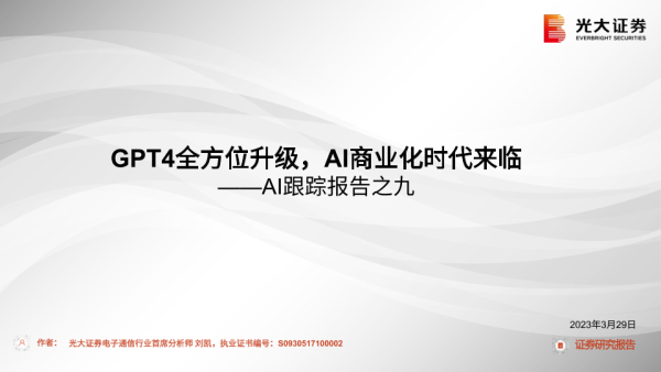 【光大证券】【20230329】AI行业跟踪报告之九:GPT4全方位升级,AI商业化时代来临-41页