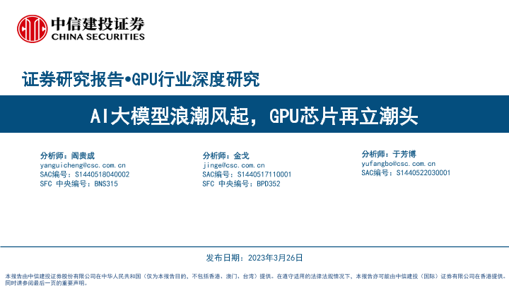 【中信建投证券】【20230326】GPU行业深度研究:AI大模型浪潮风起,GPU芯片再立潮头-86页