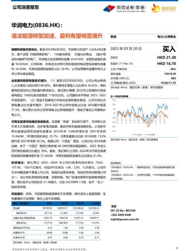 【国信证券】【20230324】清洁能源转型加速,盈利有望明显提升-16页